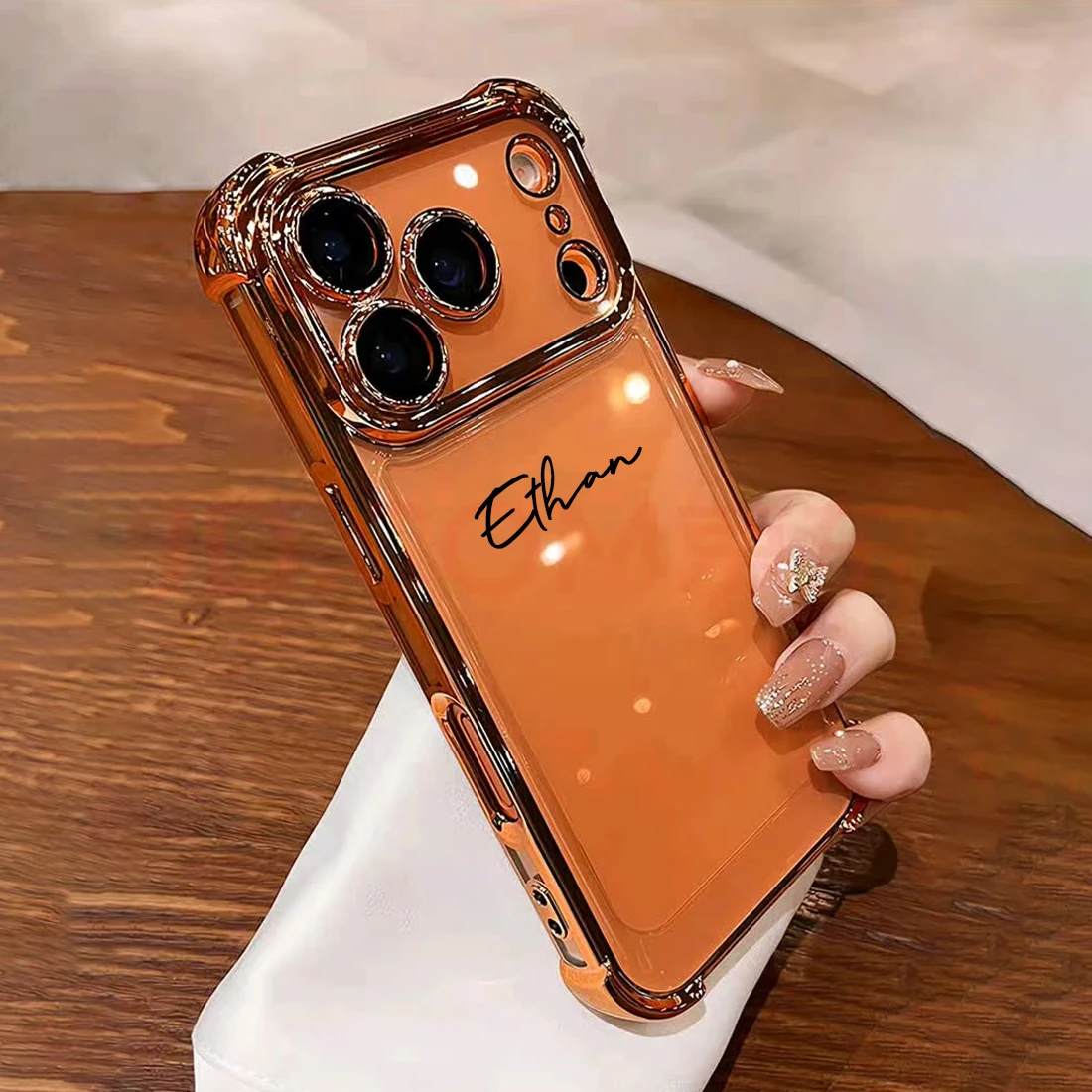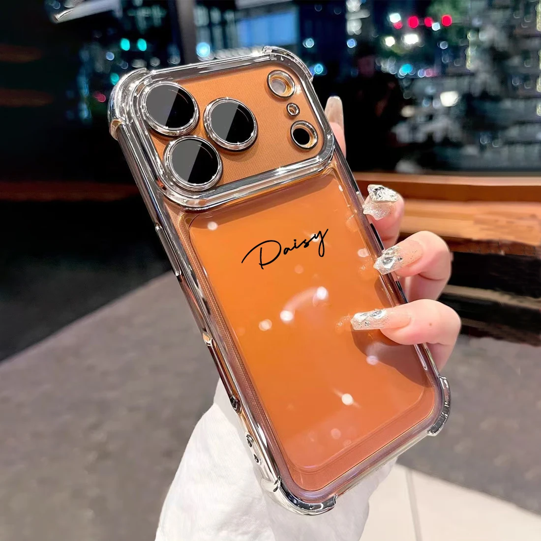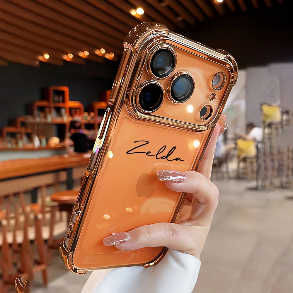 Nome: Capa Iphone Transparente Personalizada com Nome — Bordas Metalizadas e Proteção Antichoque